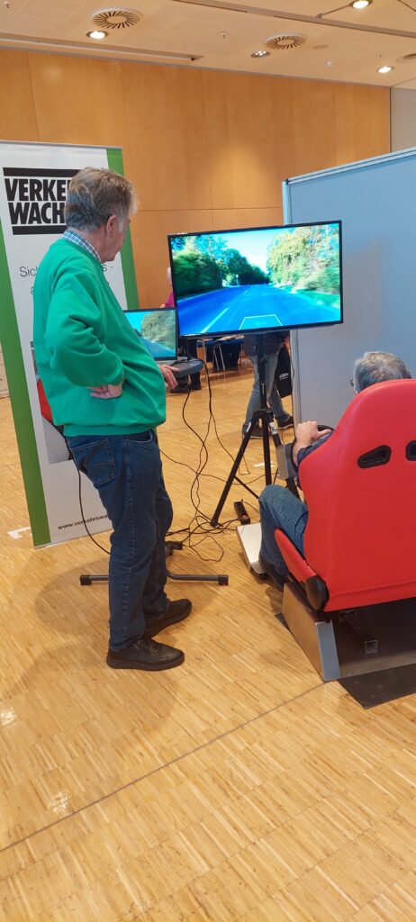 Der alljährliche Seniorentag im Kuko in Rosenheim war wieder sehr gut frequentiert. Viele Besucher nahmen auch die Gelegenheit wahr, am neuen Testgerät der Verkehrswacht ihre Reaktionsfähigkeit unter Beweis zu stellen.